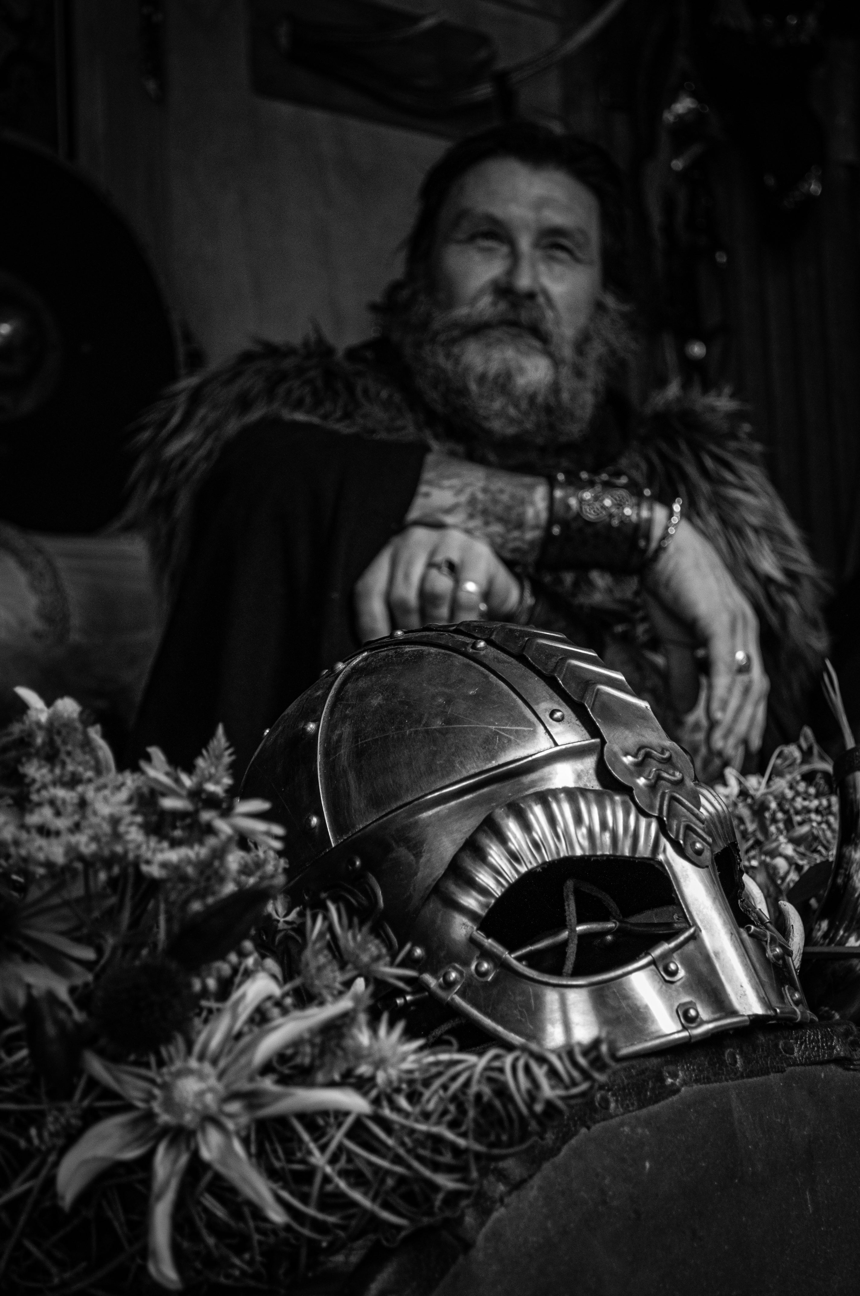 The detailed craftsmanship of the costumes and props, including weathered shields and authentic weaponry, creates a vivid portrayal of the Viking era. The strategic use of flowers adds a layer of depth and complexity, suggesting a society that was not only fierce but deeply connected to its natural surroundings.